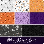 Mr. Bones is a spooky skeleton that loves to sew! This fun collection has a Halloween sewing themed twist. Designed by Kimberlee Peers-Moore for Figo Fabrics. Great for quilts & home decor. 100% cotton, 43/44" WOF